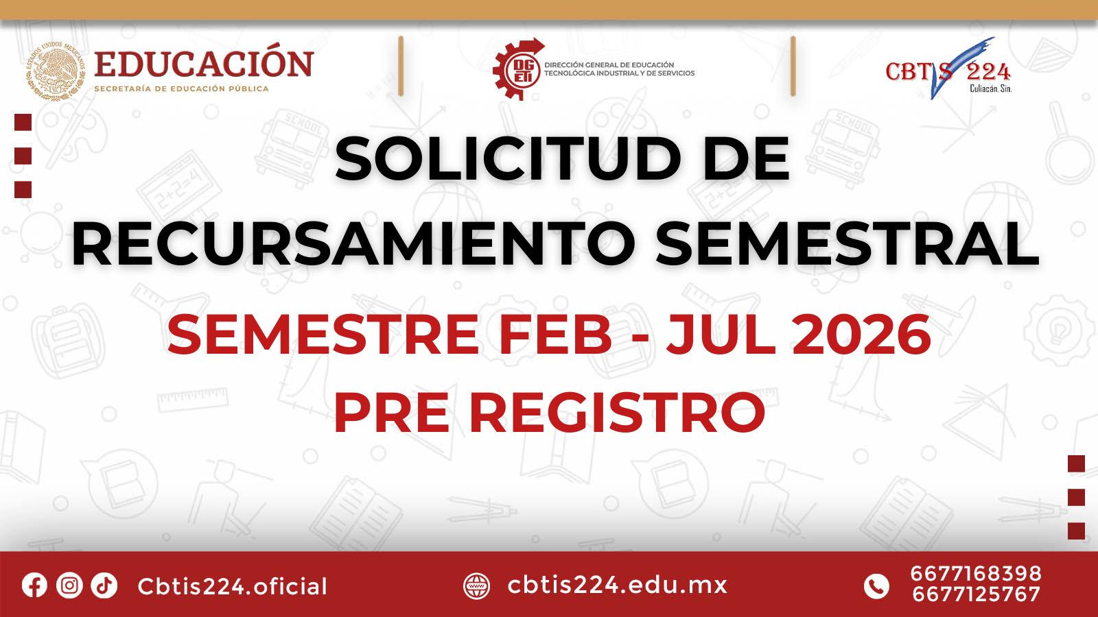 Estimados alumnos y padres de familia: Les compartimos los Pasos a seguir en el proceso de Reinscripción al Semestre Febrero-Julio 2026 de nuestro plantel: 1. REGISTRATE Realiza tu solicitud de pre-registro en este formulario, recibirás un correo con tu cédula de pre-registro. En caso de NO recibir tu cédula de pre-registro (revisar spam) al correo institucional, favor de acudir a ventanilla de Control Escolar el día Martes 03 de febrero de 2026 en horario de 8:00 a 13:00 horas. 2. RECIBO DE PAGO Descarga tu recibo de pago a partir del 01 de febrero en el siguiente link: LINK RECIBO DE PAGO El recibo de pago te llegará de manera automática a tu correo. SI ERES ALUMNO(A) REGULAR y para el día Martes 03 de febrero de 2026, NO recibiste en tu correo institucional el recibo de pago para reinscripción, favor de pasar a la ventanilla de financieros el mismo día Martes 03 de febrero en horario de 8:00 a 13:00 horas. **Podrán reinscribirse aquellos alumnos que tengan hasta un máximo de 4 asignaturas NO acreditadas** En caso de solicitar Descuento por ser hijo de Trabajador Federal Descentralizado o por tener un hermano(a) alumno(a) del plantel, acudir DIRECTAMENTE a las ventanillas de Recursos Financieros ÚNICAMENTE los días Martes 03 y Miércoles 04 de febrero de 2026 en horario de 8:00 a 13:00 horas, con la siguiente documentación: REQUISITOS PARA DESCUENTO POR TRABAJADOR FEDERAL DE LA EDUCACIÓN DESCENTRALIZADO CONSTANCIA DE SERVICIOS EXPEDIDA POR LA SEP (ORIGINAL) CON FECHA ACTUAL. ÚLTIMO TALÓN DE PAGO. COPIA DEL INE DEL TRABAJADOR. ESCRITO LIBRE DIRIGIDO AL DIRECTOR FRANCISCO JAVIER AVILEZ MORALES SOLICITANDO LA EXONERACIÓN DEL ALUMNO. COPIA DE ACTA DE NACIMIENTO DEL ALUMNO. COPIA DE CREDENCIAL O ÚLTIMA BOLETA DEL ALUMNO. REQUISITOS PARA DESCUENTO POR HERMANOS COMPROBANTE DE PAGO DEL ALUMNO DE MENOR GRADO (EN CASO DE SER DEL MISMO GRADO, FAVOR DE PAGAR CUALQUIERA DE LOS DOS RECIBOS). COPIA DE AMBAS CREDENCIALES O BOLETAS (EN CASO DE SER HERMANOS DE NUEVO INGRESO, DEBERÁN ENTREGAR COPIA DEL ACTA DE NACIMIENTO). 3. ACUDIR A VENTANILLAS Acude a ventanilla de Recursos Financieros a entregar la siguiente documentación: Cédula de pre-registro Comprobante de pago en original y 3 copias 2. Horario de atención de 8:00 a 13:00 horas 2do. semestre Miércoles 04 de febrero de 2026. 4to. semestre Jueves 05 de febrero de 2026. 6to. semestre Viernes 06 de febrero de 2026. *REGISTRO DISPONIBLE* MIERCOLES 28 DE ENERO AL LUNES 2 DE FEBRERO DEL 2026 LINK PRE-REGISTRO REINSCRIPCIÓN SEMESTRE FEB-JUL 2026