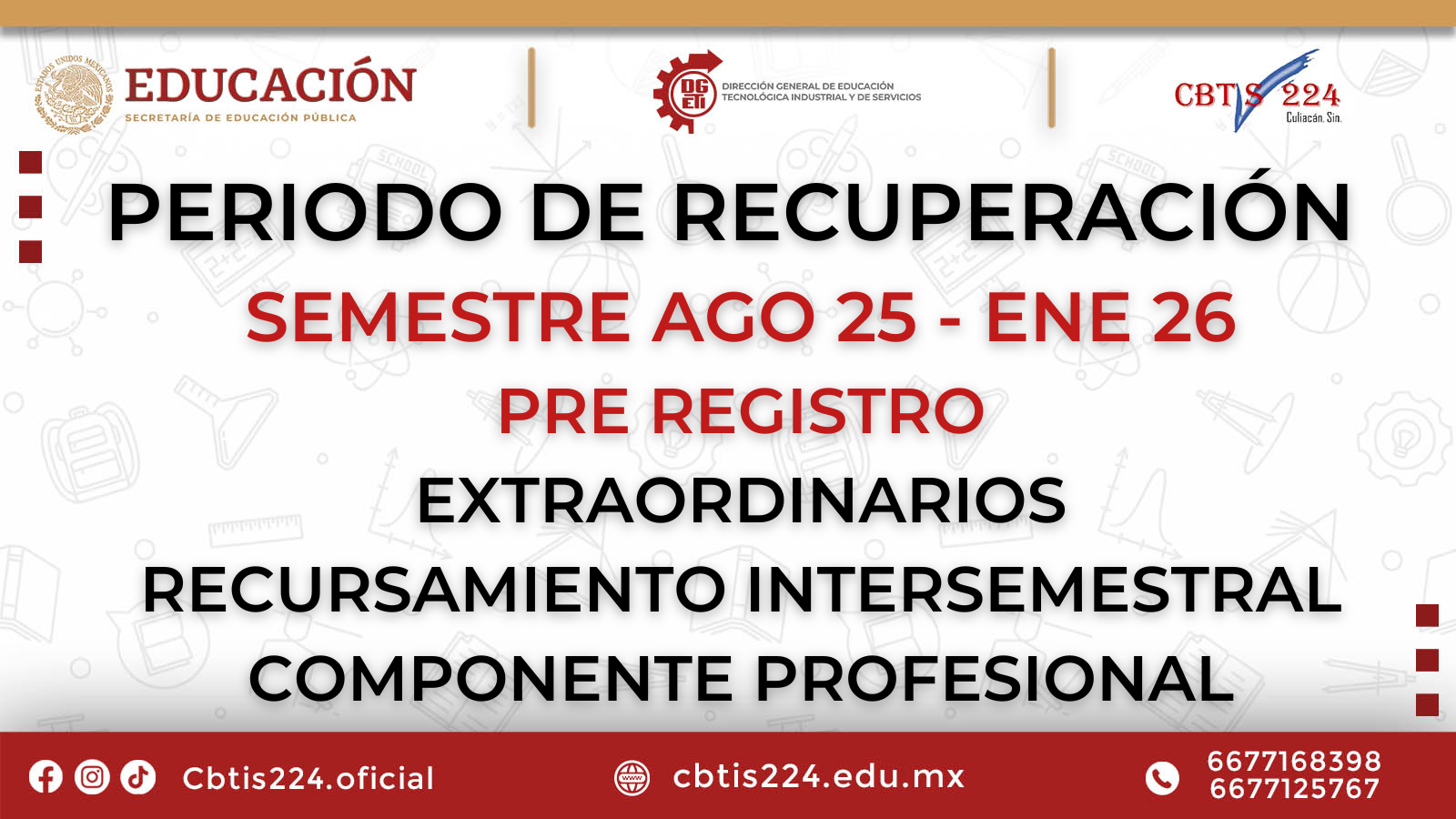 El preregistro, la entrega de documentos y la presentación al examen o recursamiento son responsabilidad exclusiva del alumno.